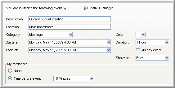 The event is added to your calendar and the calendars of all participants and booked resources.