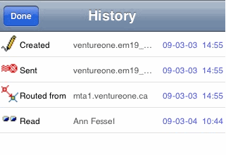 To see the history of a sent message, including who has read it, open the message and select History.