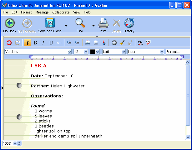 FirstClass ED provides a personal area called My Journals. You can use this area to create personal journals and class journals, and contribute to them. Your teacher likely has ideas about how you should use your class journal. Consider creating personal journals also. Use a personal journal to