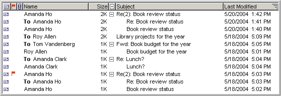 You can group all items by a column, such as Name or Subject. This puts the items with the same name or subject together. For example, this is a Mailbox grouped by subject:
