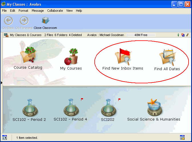 When you start FirstClass ED for the first time, you are greeted with a blank "classroom". This classroom is where you will lay the foundation for the coming semester. From this classroom, you can manage all of the classes you are teaching for the current semester.