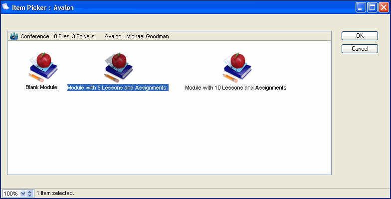 4               Choose the type of lesson/assignment you wish to create and click OK.
