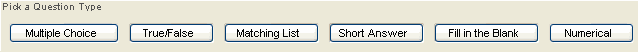 The Authoring tool supports the creation of multiple choice, matching list, true/false, numeric, fill-in-the-blank, and short answer question types that are saved into a question bank.