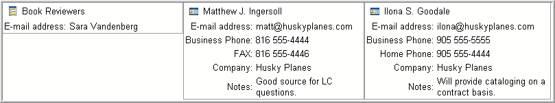 The index card view is a particularly useful display for personal contact information.